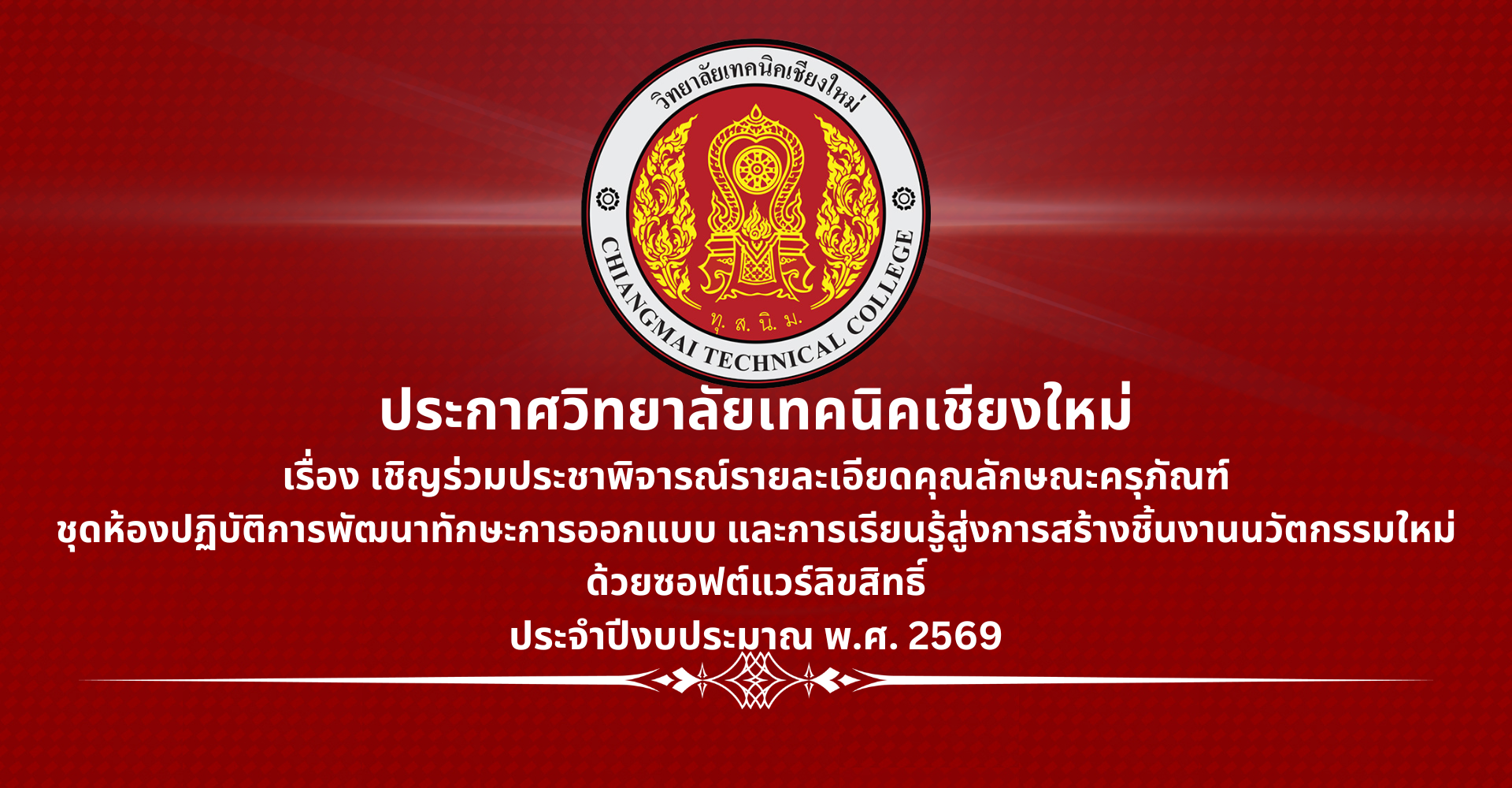 เชิญร่วมประชาพิจารณ์รายละเอียดคุณลักษณะครุภัณฑ์ ชุดห้องปฏิบัติการพัฒนาทักษะการออกแบบฯ...
