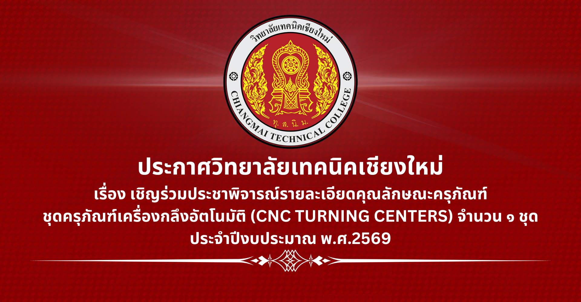 เชิญร่วมประชาพิจารณ์รายละเอียดคุณลักษณะครุภัณฑ์ชุดครุภัณฑ์เครื่องกลึงอัตโนมัติ (CNC TURNIN...