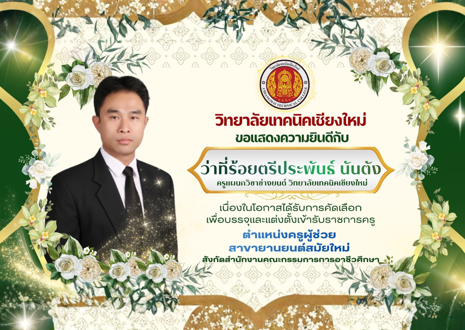ดร.วัชรพงศ์ ฝั้นติ๊บ ผู้อำนวยการ วิทยาลัยเทคนิคเชียงใหม่ ปฏิบัต...อ่านต่อ