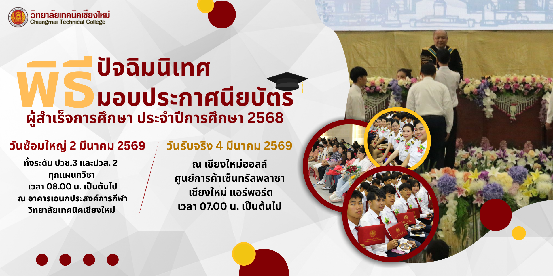 วิทยาลัยเทคนิคเชียงใหม่ กำหนดการเปิดการเรียนการสอนภาคฤดูร้อน ประจำปีการศึกษา 2568...